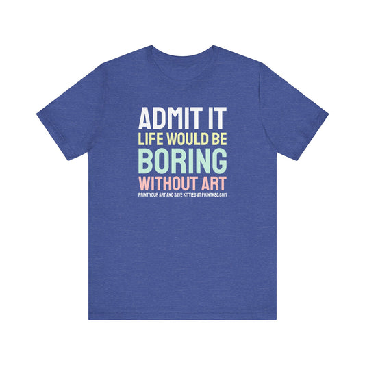 This classic unisex jersey short sleeve tee that reads "Life Would Be Boring Without Art T-Shirt" fits...