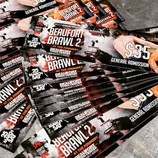 2x7 event tickets are a little different than our other bookmarks/tickets. First and foremost, they can be individually numbered using variable data. Second, designs print on a durable 16pt card stock with UV coating.