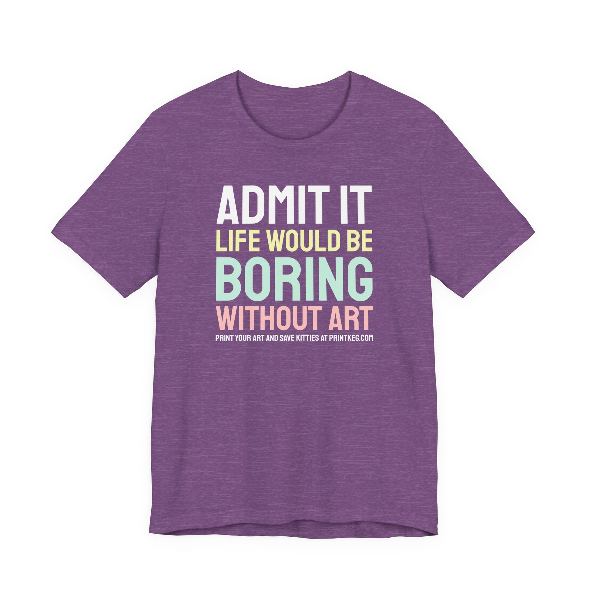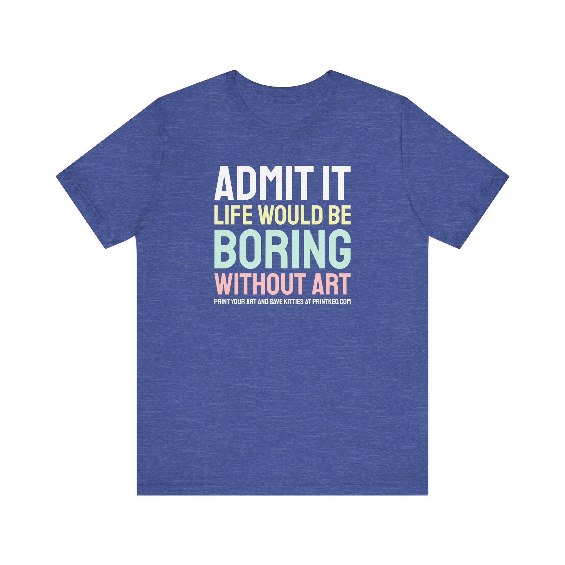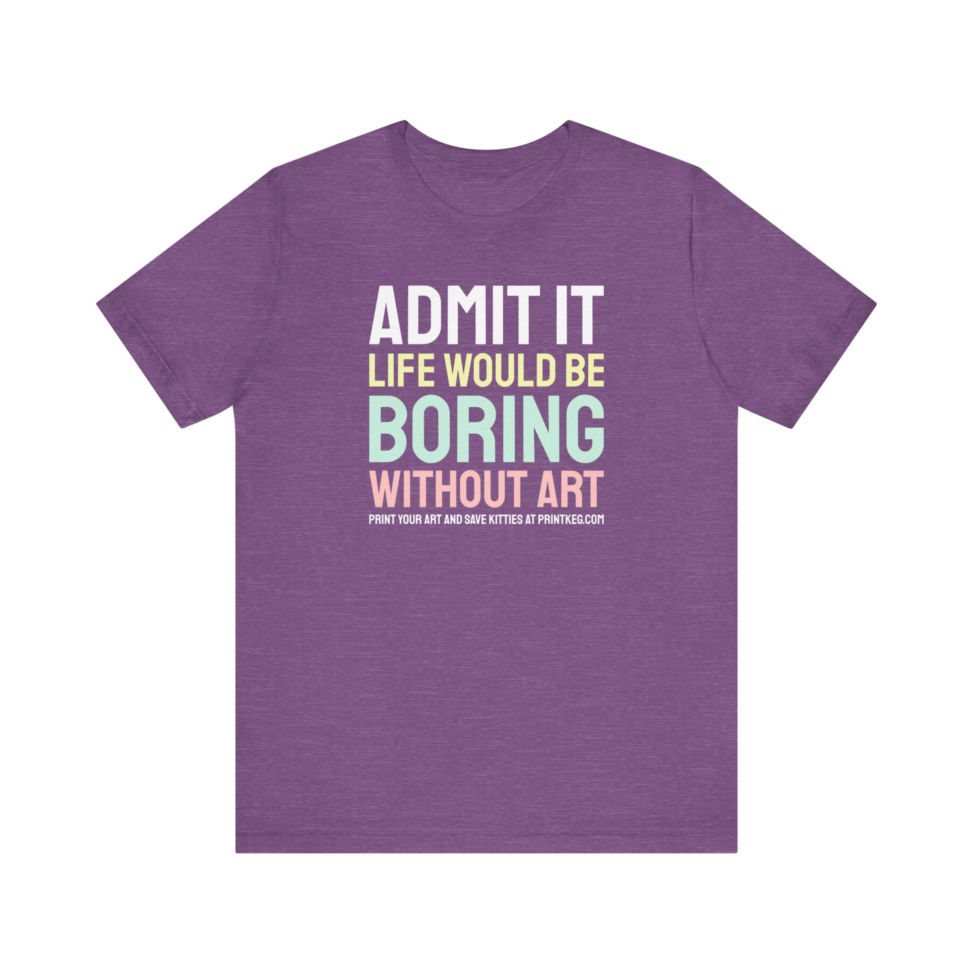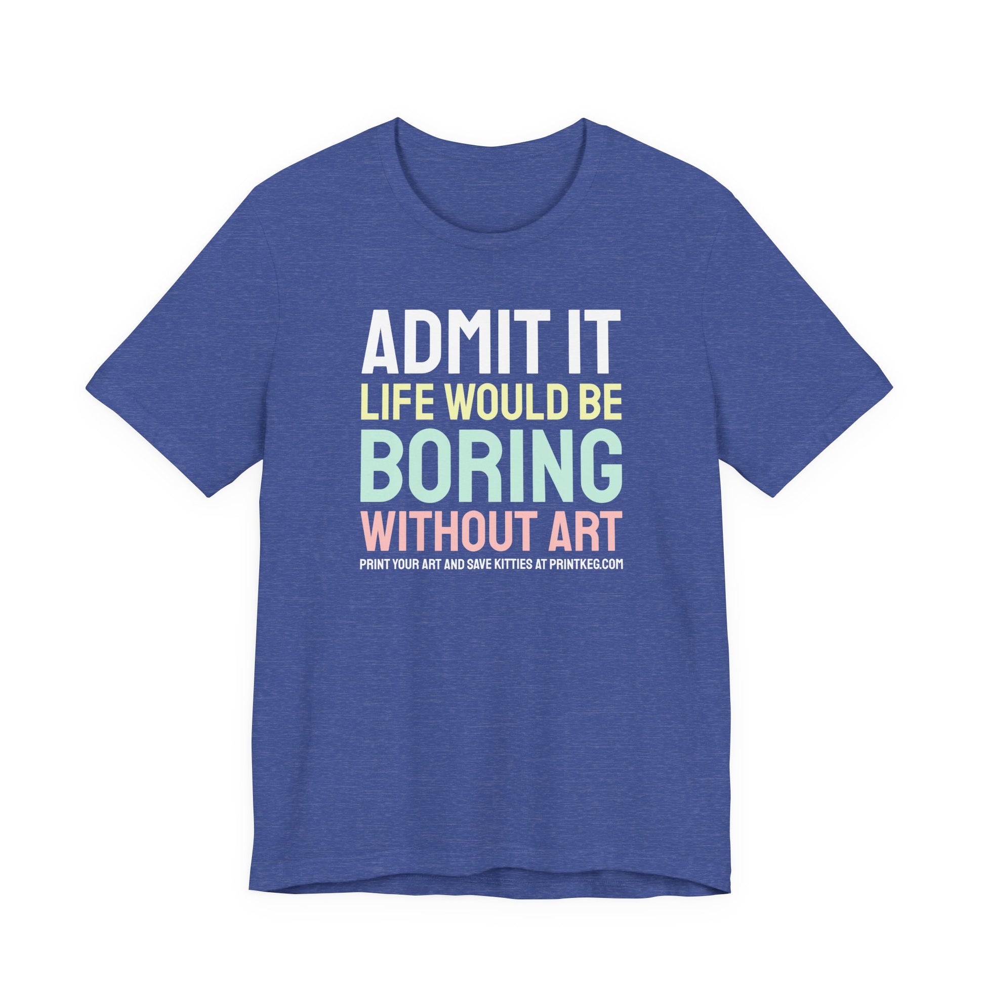 This classic unisex jersey short sleeve tee that reads "Life Would Be Boring Without Art T-Shirt" fits like a well-loved favorite. Soft cotton and quality print make users fall in love with it over and over again. These t-shirts have-ribbed knit collars to bolster shaping. The shoulders are tapered for a better fit over time. Dual side seams hold the garment's shape for longer.